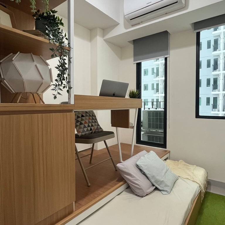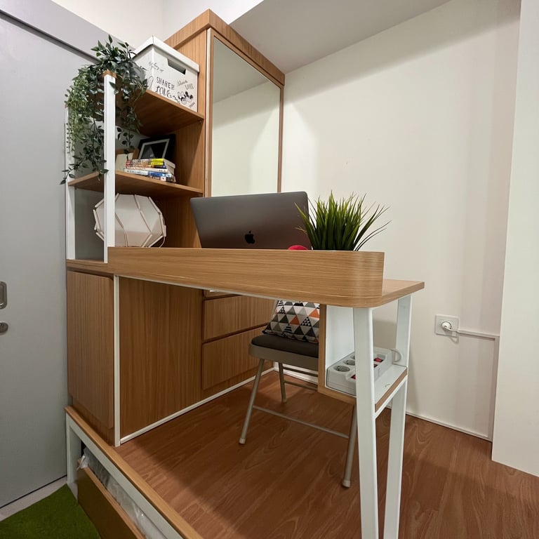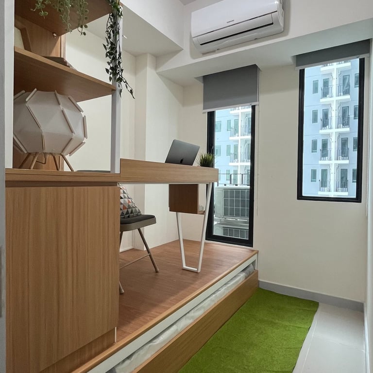 This compact apartment is thoughtfully designed with multifunctional elements that make the most of its limited space, creating an environment that balances smart functionality and aesthetic sophistication—ideal for modern living where every detail contributes to comfort and style.