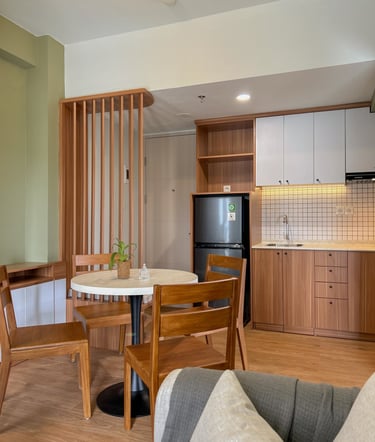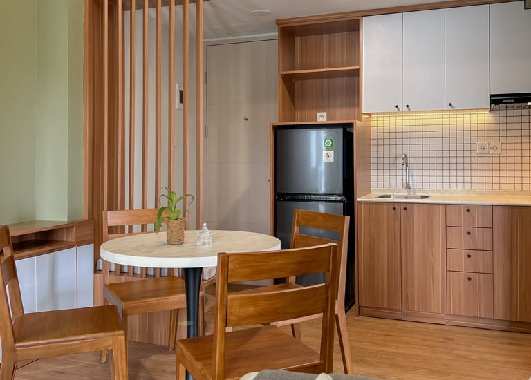 限られた空間を最大限に活用する多機能な設計が施されたコンパクトなアパートメント。実用性と洗練された暮らしを両立するスマートでスタイリッシュな空間です。