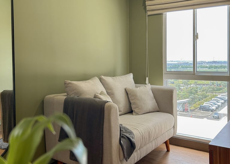 グリーンを基調としたコンパクトな空間が、上品さと効率性を兼ね備えた洗練された暮らしを実現します。